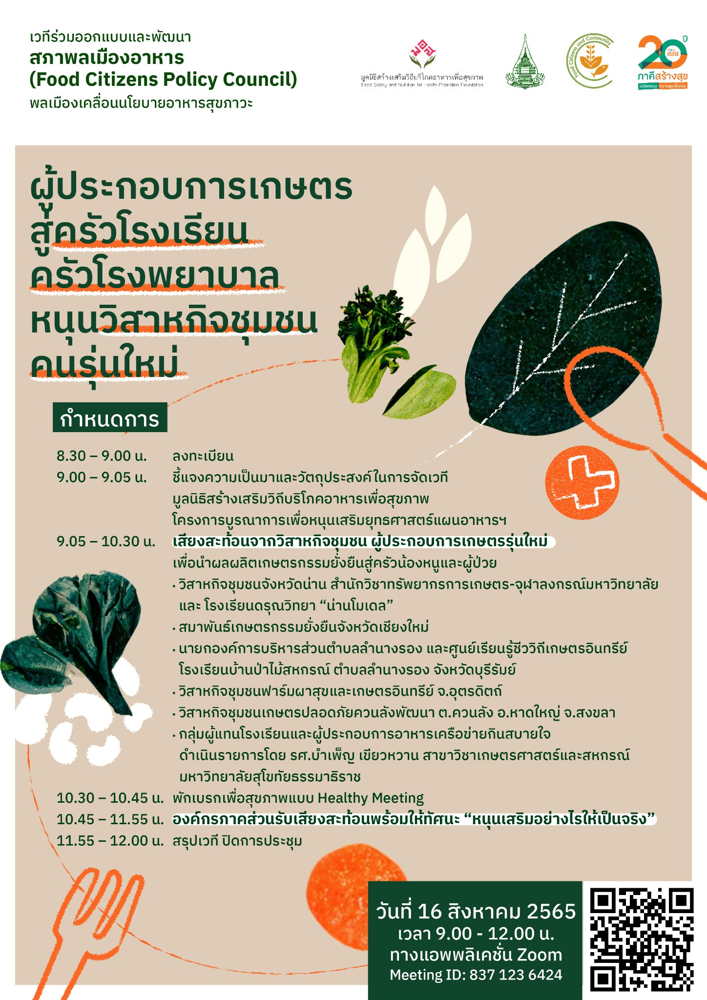 เวทีร่วมออกแบบและพัฒนาสภาพลเมืองอาหาร (Food Citizens Policy Council) 16 สิงหาคม 2565