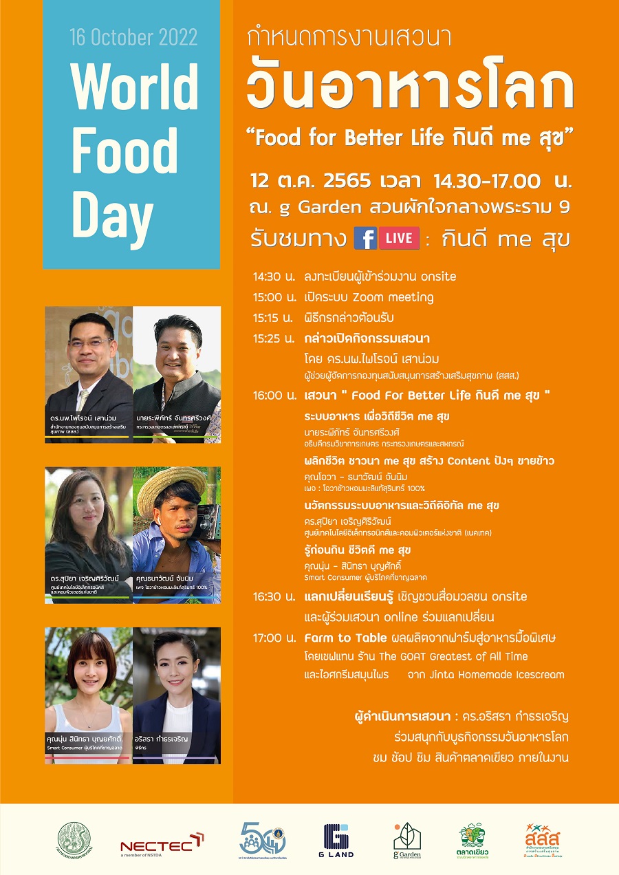 กิจกรรมเสวนา “วันอาหารโลก Food For Better Life กินดี me สุข”