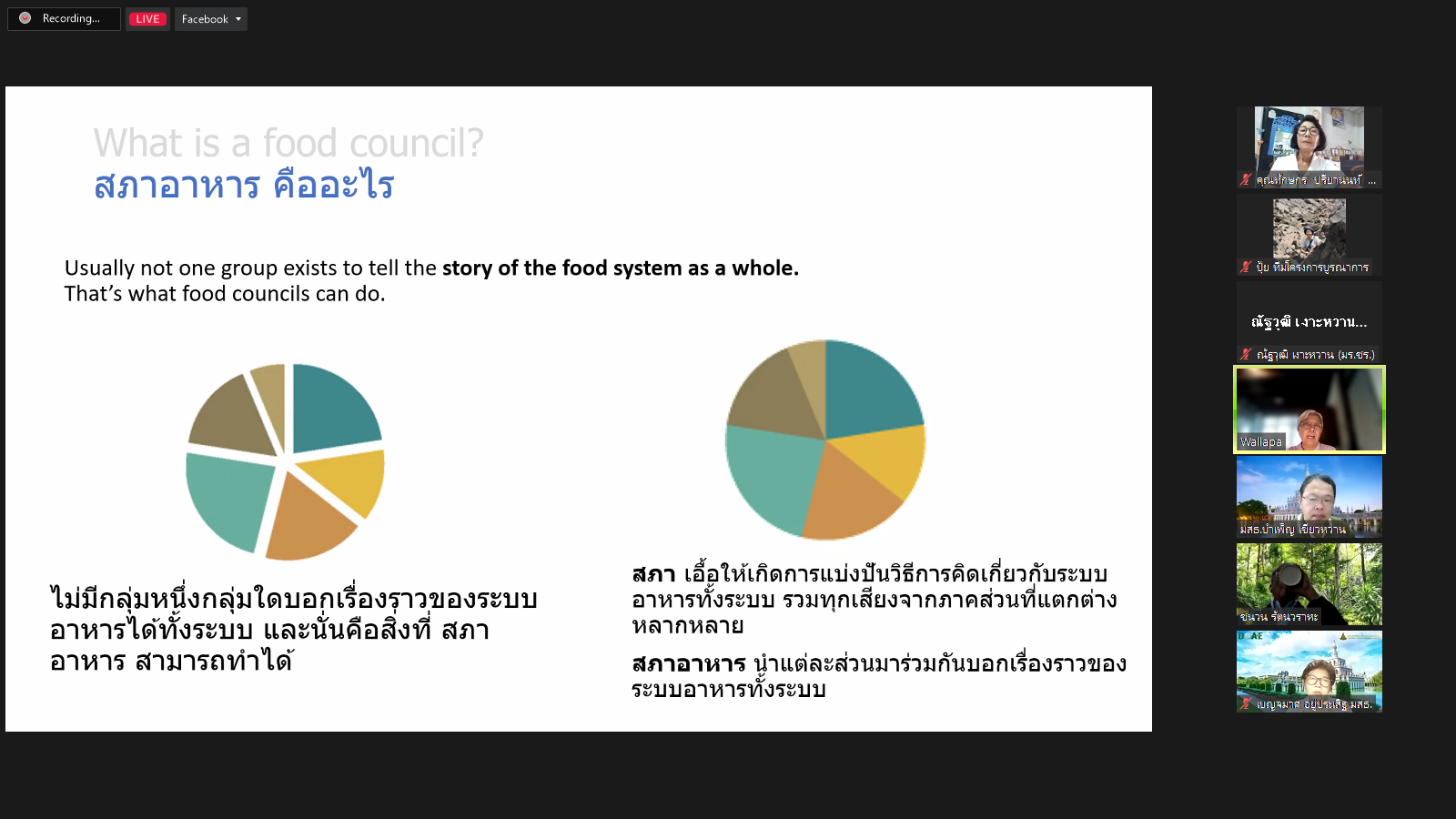 กิจกรรมเริ่มจากการกล่าวเปิดเวทีของคุณชนวน รัตนวราหะ กรรมการกำกับทิศแผนอาหารเพื่อสุขภาวะ จากนั้นคุณวัลลภา แวนวิลเลียนส์วาร์ด ผู้รับผิดชอบโครงการบูรณาการเพื่อหนุนเสริมยุทธศาสตร์แผนอาหารและร่วมกับภาคีเพื่อการขยายผลระบบอาหารสุขภาวะ ภายใต้การสนับสนุนของแผนอาหารเพื่อสุขภาวะ สำนักงานกองทุนสนับสนุนการสร้างเสริมสุขภาพ (สสส.) ซึ่งเป็นหนึ่งในองค์กรร่วมจัดได้นำเสนอเรื่องราวของ "สภาอาหาร" ว่ามีการขับเคลื่อนมากว่า 30 ปีแล้วในต่างประเทศ เกิดจากการริเริ่มของประชาชนโดยเชื่อว่าพลังของผู้คน หรือ “พลเมืองอาหาร” สามารถเคลื่อนนโยบายอาหารได้ มีความใกล้เคียงกับคำว่า “สภานโยบายอาหาร” (Food Policy Council), “กฎบัตรอาหาร” (Food Charter), และ “ข้อตกลงนโยบายอาหาร” (Food Policy Pact) ซึ่งทั้งหมดนี้จัดว่าเป็น “สภาอาหาร” (Food Council) ด้วยกันทั้งสิ้น หลักคิดสำคัญของสภาอาหารคือ ไม่มีกลุ่มหนึ่งกลุ่มใดสามารถบอกเรื่องราวระบบอาหารได้ทั้งระบบ โดยสิ่งที่สภาอาหารสามารถทำได้ คือ เอื้อให้เกิดการแบ่งปันวิธีการคิดเกี่ยวกับระบบอาหารทั้งระบบ รวมทุกเสียงจากภาคส่วนที่แตกต่างหลากหลาย และสภาอาหารนำแต่ละส่วนมาร่วมกันบอกเรื่องราวของระบบอาหารทั้งระบบ เป็นการขับเคลื่อนจากภาคประชาสังคมไปสู่โครงสร้างรัฐนั่นเอง นอกจากนี้ยังได้อธิบายถึงโครงสร้างของสภาอาหารและกรณีศึกษาสภาอาหารในต่างประเทศ 3 แห่ง ได้แก่ สภาอาหารเมืองโตรอนโต ประเทศแคนาดา สภาอาหารอัมสเตอร์ดัม และสภาอาหารเมืองมิลาน ประเทศอิตาลี ซึ่งโครงการบูรณาการฯ จะทำการศึกษาในปีนี้เพื่อเปรียบเทียบกับบริบทของไทย โดยมองว่าแผนอาหารเพื่อสุขภาวะ สสส. มีต้นทุนพื้นที่รูปธรรมจากการทำงานของภาคีที่สามารถพัฒนาให้เกิดสภาพลเมืองอาหารได้ หากเชื่อมโยงงานร่วมกับทั้ง 11 สำนัก แต่โจทย์สำคัญคือหากพัฒนาโครงสร้างสภาอาหารทั้งเชิงพื้นที่และเชิงประเด็นจะทำงานร่วมกันอย่างไร และเชื่อมโยงกับคณะกรรมการอาหารแห่งชาติได้อย่างไร